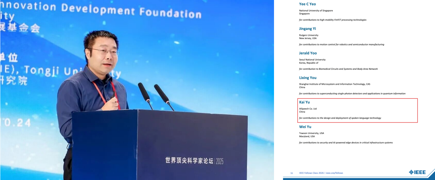 而就在前不久,思必驰技术发展的核心奠基者——首席科学家、上海交通大学特聘教授俞凯,因其在口语语言技术的设计与部署方面的杰出贡献,当选2026年度IEEE Fellow,这一国际权威荣誉再次印证了思必驰在对话式人工智能领域扎实的技术根基与卓越的工程化能力。