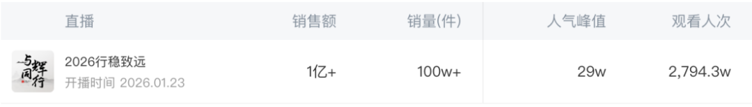 根据第三方数据平台蝉妈妈统计,这场时长仅3小时59分的直播,累计场观2418万,在线峰值达45.5万,不仅远超其日常直播水平,更在单日场观上超过了“与辉同行”。
