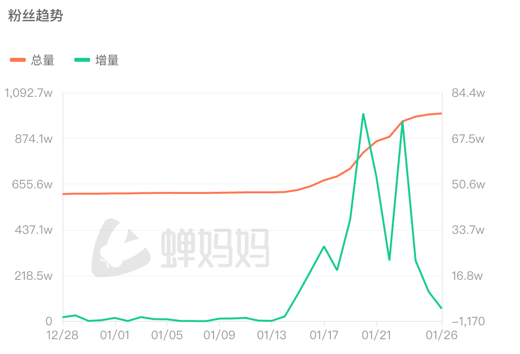 这背后是李亚鹏从1月13日开始的公益铺垫:他在抖音、视频号、小红书接连发布4条关于嫣然天使儿童医院的消息,其中《最后的面对》虽仅获59.8万点赞,却成功撬动公众对唇腭裂救助公益的关注。由于公益基金“专款专用”无法支付房租,直播带货成为公众支持公益的间接出口,10天内其抖音账号涨粉334万,截至1月28日粉丝量达到1000.8万。