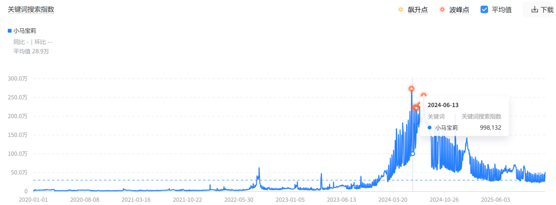 在中国,“小马宝莉”的翻红很大程度上有赖于卡游推出的卡牌产品,并在2024年达到热度巅峰。2025年以来,尽管卡游仍在持续推出全新系列的小马宝莉卡牌和各种营销活动,但卡牌及IP热度反而持续下滑。