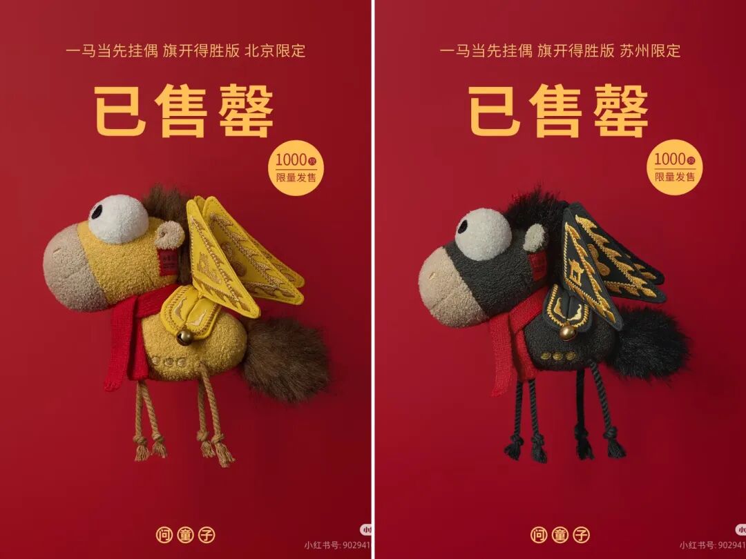 问童子打造的“一马当先”是其年度生肖系列的最新产品,此前其已打造过“龙头老大”和“中华地头蛇”等生肖系列。其中,“龙头老大”最为出圈,“头大身小”的设计风格也成为问童子系列玩偶最典型的形象特征。从其官方账号可知,该系列还推出了诸如北京、苏州等城市限定款,并在各城市的快闪中早早售罄(限量1000只)。