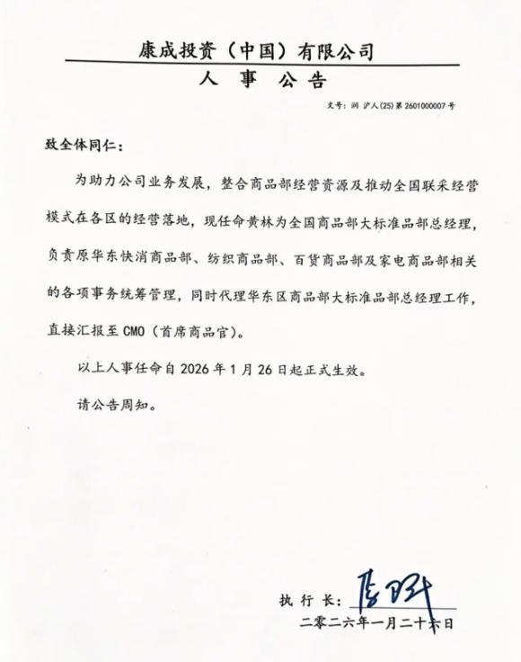 任命来自永辉的黄林,整合快消、百货、纺织、家电等多个核心部门,全面推行“全国联采”,目的就是要将过去分散在各个区域、各个业态的采购权和商品资源进行强力整合。