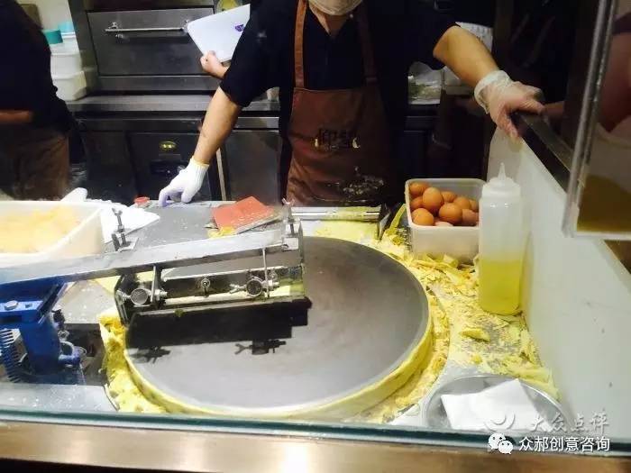 仰望包脚布:仰望包脚布隶属上海本土新晋小吃,其营销手段和喜茶比较像,前期选择客流量大的店铺,重金砸广告找人来排队,然后以排队形成事件。不同的是仰望包脚布在摊饼上采用半自动化的设备,使得产品更加标准化。
