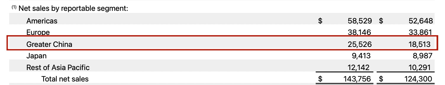财报显示,该季度苹果总营收达1437.56亿美元,较上年同期的1243亿美元同比增长16%,远超市场预期的1384亿美元;净利润为420.97亿美元,较上年同期的363.30亿美元同比增长15.9%;摊薄后每股收益2.84美元,同比增长18.3%,同样高于市场预估的2.68美元。