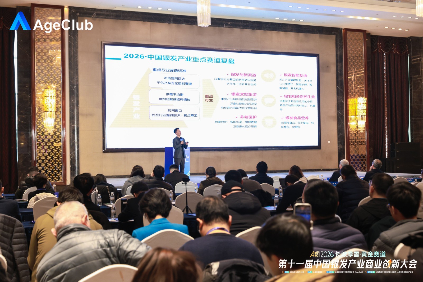 中国领先的银发产业数据服务平台AgeClub的创始人段明杰,从产业数据和商业实践角度,带来《2025-2026中国银发产业投资复盘与创新机会》主题演讲。他指出,中国银发产业正处于从护理刚需市场向活力老年消费市场“双轮驱动”的高密度爆发期,技术创新与模式创新是把握未来“长坡厚雪”黄金赛道的核心动力。