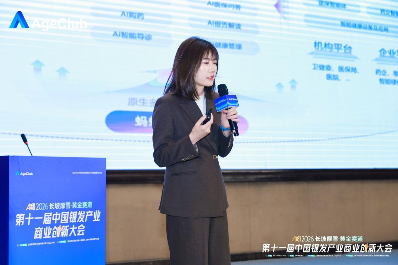 在“银发赛道开拓创新与机会前瞻”板块,蚂蚁健康上海区域总经理赵静雯介绍了“蚂蚁阿福”AI原生APP如何通过温情智能交互,实现从“被动就医”到“主动健康守护”的转变,用科技力量带来微小而美好的改变。美团养老行业大客户团队负责人王磊围绕《银发经济生态协同共建美团“平台+养老”服务模式创新与实践》分享了零售平台如何赋能银发经济企业,打通银发消费最后一公里。