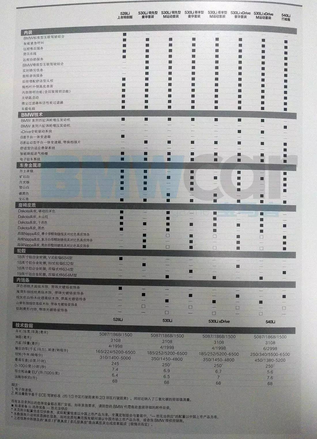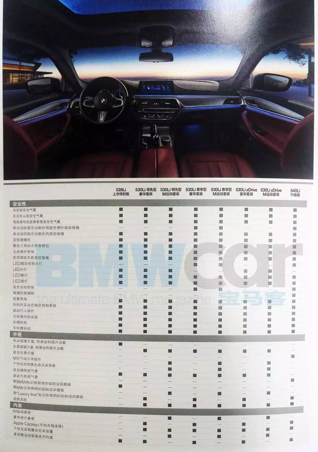 从《BMWCar》这份非官方杂志提前曝光的信息来看,华晨宝马全新5系上市时会有8款车型,其中528Li和540Li均只有一款,绝大多数车型都是使用高功率2.0T动力系统的530 Li,看来这也是BMW认定的主力产品。