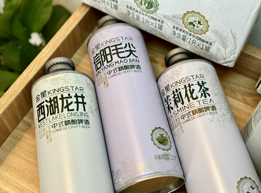 所谓“中式精酿”并非一个严谨的行业分类,而是金星啤酒为自己开辟的差异化赛道。核心是将中国消费者熟悉的茶、小吃等风味元素,通过酿造工艺融入啤酒。其中,打头阵的“金星毛尖”上市后表现堪称现象级,首日销量即达6吨,在随后约10个月内,该系列产品总销量突破1亿罐,约合10万吨。
