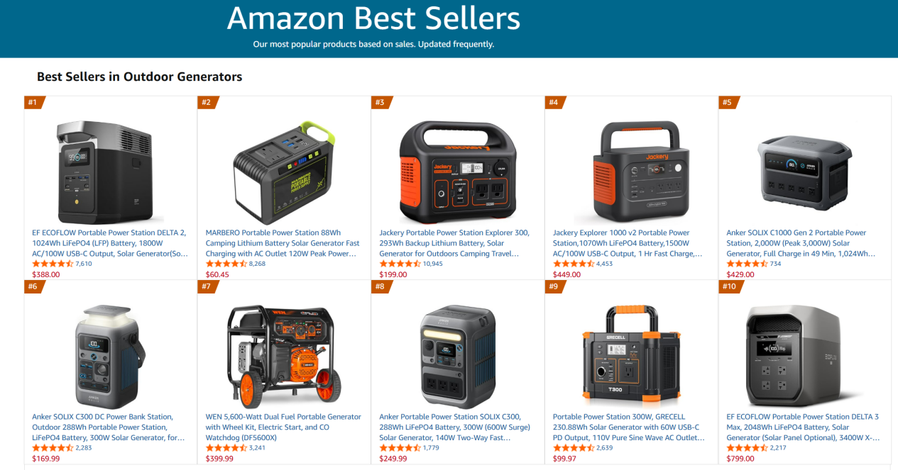 从更直接的销售端情况看,这一特征也有所体现。有业内人士向界面新闻记者指出,在北美亚马逊Best Seller Rank(BSR)的榜单中,Jackery部分产品进入前列时,往往伴随较明显的价格让利。