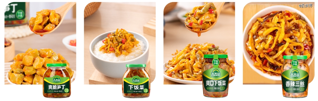 时至今日,吉香居旗下培育了“吉香居”“暴下饭”“酱牛八方”“川至美”等主要品牌,品类也从单一的泡菜延伸至佐餐泡菜、佐餐酱、复合调味料等100多个品种。脆嫩爽口的下饭菜,成为国民心中的“白月光”。