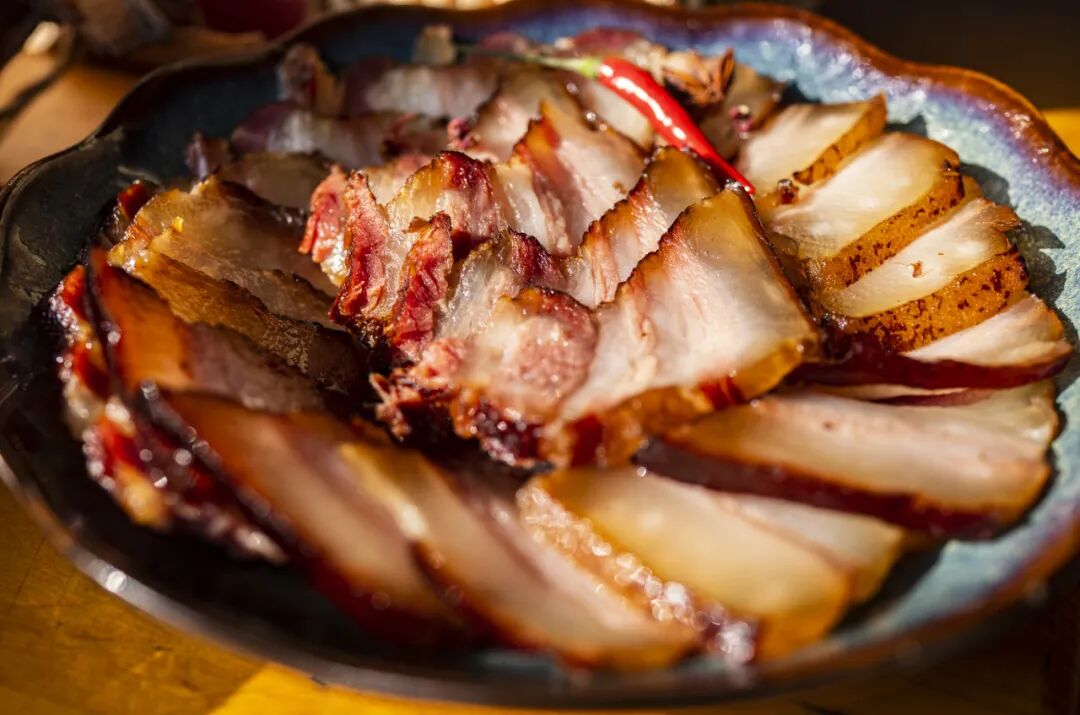 崇州的柴火腊肉,传承了传统四川腊味的“古法制作工艺”,紧实弹嫩、醇厚油润。崇州的年与腊味分不开,它不仅是舌尖上的美味,还是崇州人对家的惦念。