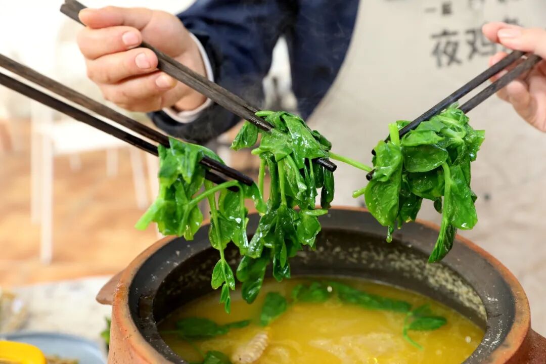 节目中,烧椒牛尾笋、豌豆尖丸子汤、鱼香熘双尖、豌豆尖炒腊肉等从深山竹林到平阔田野的崇州滋味轮番登场,崇州人“食在当季,味在本土”的饮食智慧与那份浸润在寻常烟火里的山水清欢,在央视镜头下展现得淋漓尽致。