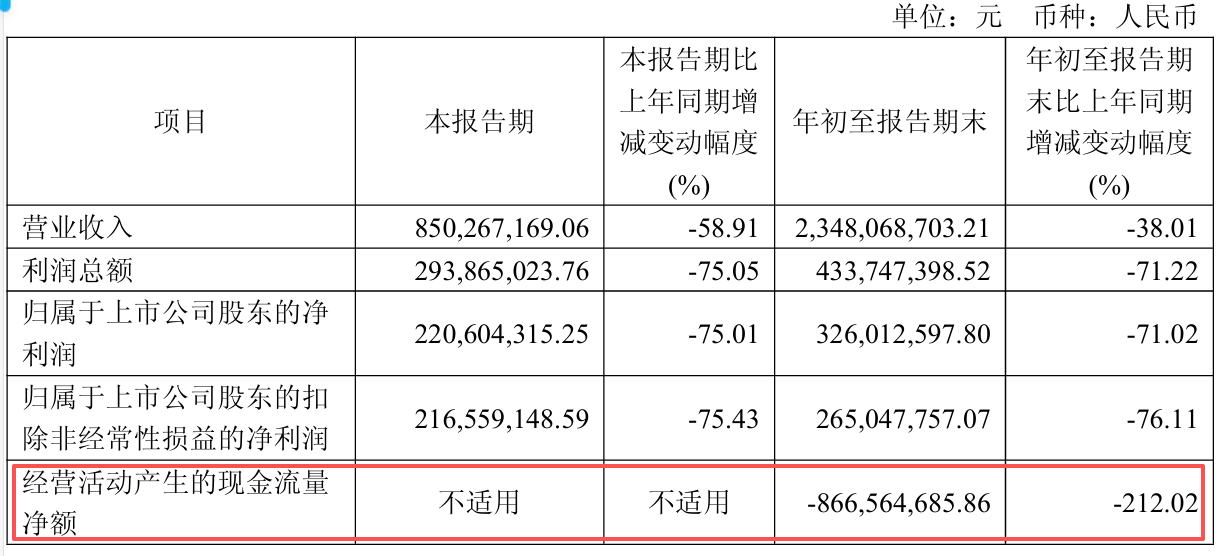 归母净利润的数据更是糟糕,2025年前三季度净利润仅3.26亿元,同比下降71.02%。与2021年—2024年同期均超过10亿元的归母净利润相比,显得尤为惨淡。