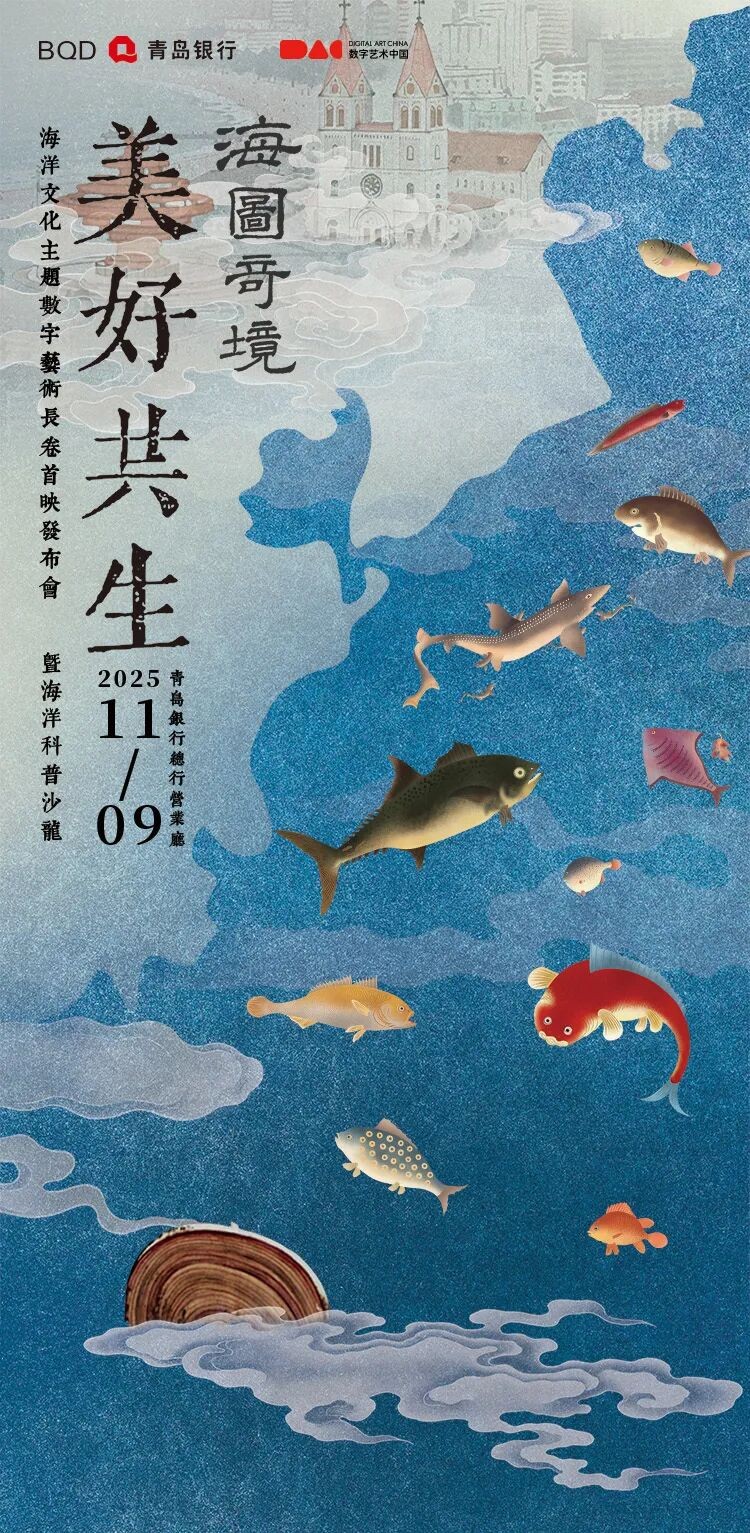 下半年,我们把视线从“个体的重逢”进一步拓展到“城市的记忆”。青岛银行与DAC联手推出数字艺术作品《海图奇境》,并于11月9日在青岛银行总行营业厅举办活动。作品以清宫《海错图》为灵感,团队对其中数十种海洋生物进行数字艺术重绘与二次创作,并应用人工智能技术,根据在地历史文化与传说生成多个跨时空场景,结合三渲二技术,以一尾“小红鱼”带领观者完成跨越古今、游历青岛海洋传说与历史的奇幻旅程。
