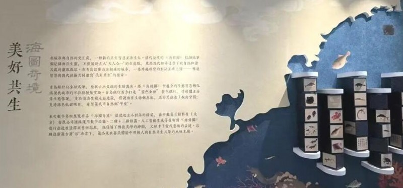 作为展览的重要组成部分,长卷壁画以《海错图》为蓝本,重绘古人笔下的海洋生灵与自然奇观,并以“美好共生”为核心意旨,在传统与现代、真实与幻想之间建立新的平衡;它与数字作品一动一静、相互映照,像是把同一段海洋记忆用两种媒介同时写下。