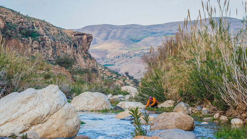约旦南边的中心地区,徒步者穿过瓦迪瓦迪哈萨,这是一个充满石灰石瀑布和嬉闹溪的一个地方。这里的河流流出来的水被当地农民使用,可以看到他们种植的的一大堆的蔬菜,包括西红柿和瓜。