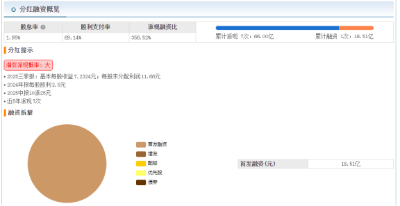 2021年,东鹏饮料成功在A股上市,当年上市每股发行价仅46.27元,募资净额约17.32亿元。而上市至今累计派现金额已达66亿元,派现融资比高达356.52%,远超当初募资额。