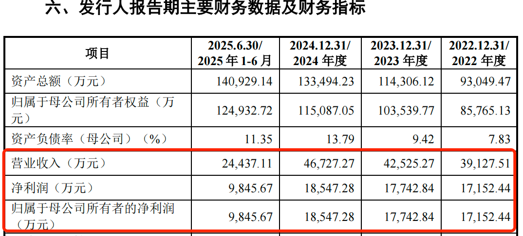 2022年至2025年上半年(以下简称“报告期”),欣兴工具的营业收入分别为3.91亿元、4.25亿元、4.67亿元和2.44亿元;归母净利润分别为1.72亿元、1.77亿元、1.85亿元和9845.67万元,业绩增长幅度不高。