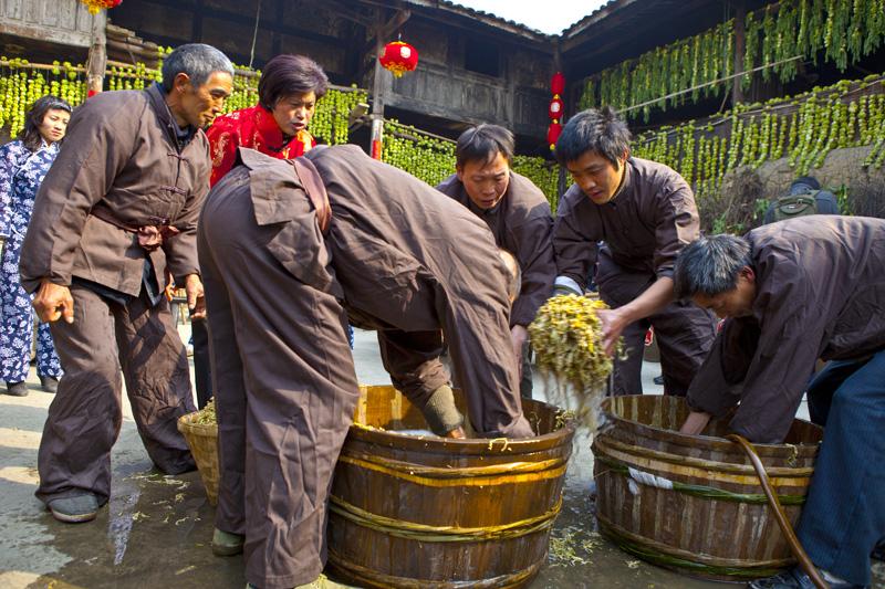 于是,涪陵榨菜正在攻克四川泡菜的技术难题,分为炒制和二次发酵两个阶段,解决泡菜在常温状态下的储存问题。
