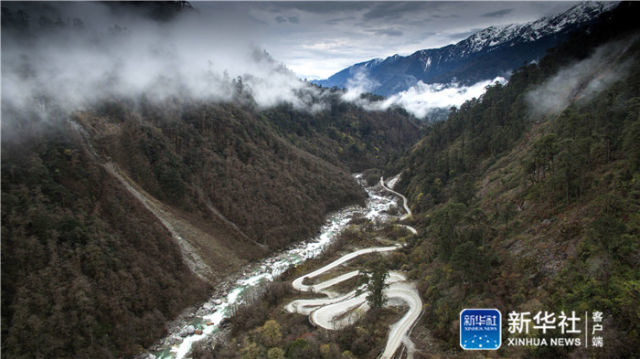 鸟瞰西藏墨脱公路(2017年3月30日摄)。2013年10月31日,西藏墨脱公路正式通车,这标志着我国结束了还有县不通公路的历史,实现“县县通公路”的目标。墨脱公路全长117.3公里,总投资16亿元,起点为林芝市波密县扎木镇318国道川藏公路与老扎墨公路的交会处,先后跨越波斗藏布江、金珠藏布江、西莫河等6条江河,以隧道穿越嘎隆拉雪山,经米日和马迪村到达墨脱县城莲花广场。新华社记者普布扎西摄