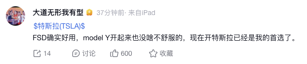 2月4日,步步高创始人、著名投资人段永平通过其雪球账号“大道无形我有型”发文表示,“FSD确实好用,Model Y开起来也没啥不舒服的,现在开特斯拉已经是我的首选了。”