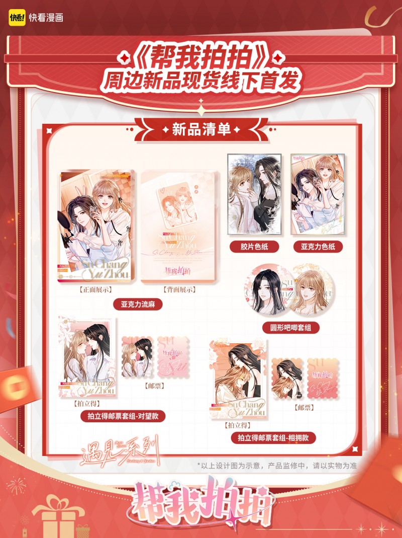 在作品热度的加持下,《帮我拍拍》的周边商业化也快速落地。2 月 1 日起,《帮我拍拍》相关周边产品正式在快看漫画谷店、快闪店、阅文好物、饭沫宇宙等多个线下渠道同步首发。