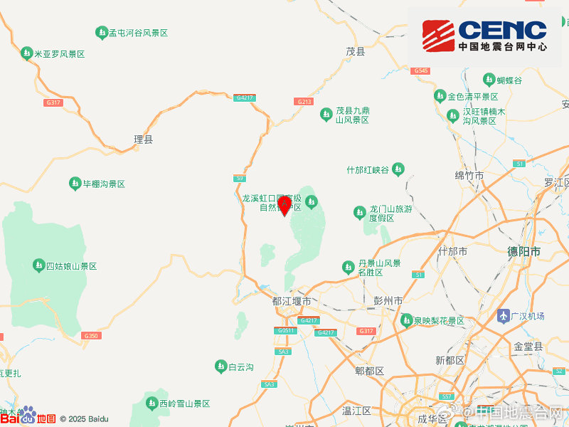 中国地震台网自动测定:02月04日17时39分在四川成都市都江堰市附近(北纬31.24度,东经103.63度)发生3.1级左右地震,最终结果以正式速报为准。
