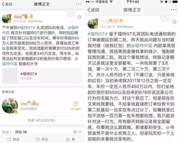 对,车聚君今天说的就是福特GT“加价门”,这在微博上曾火爆一时。