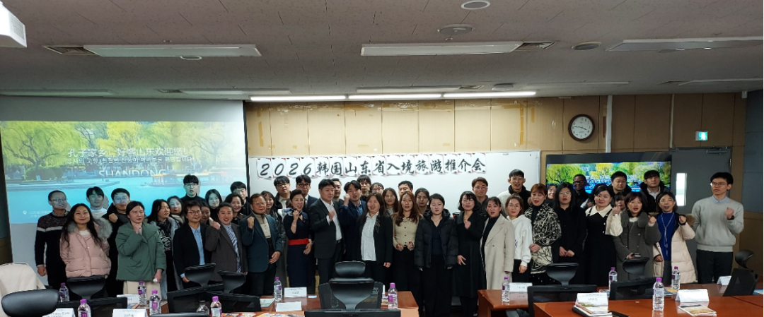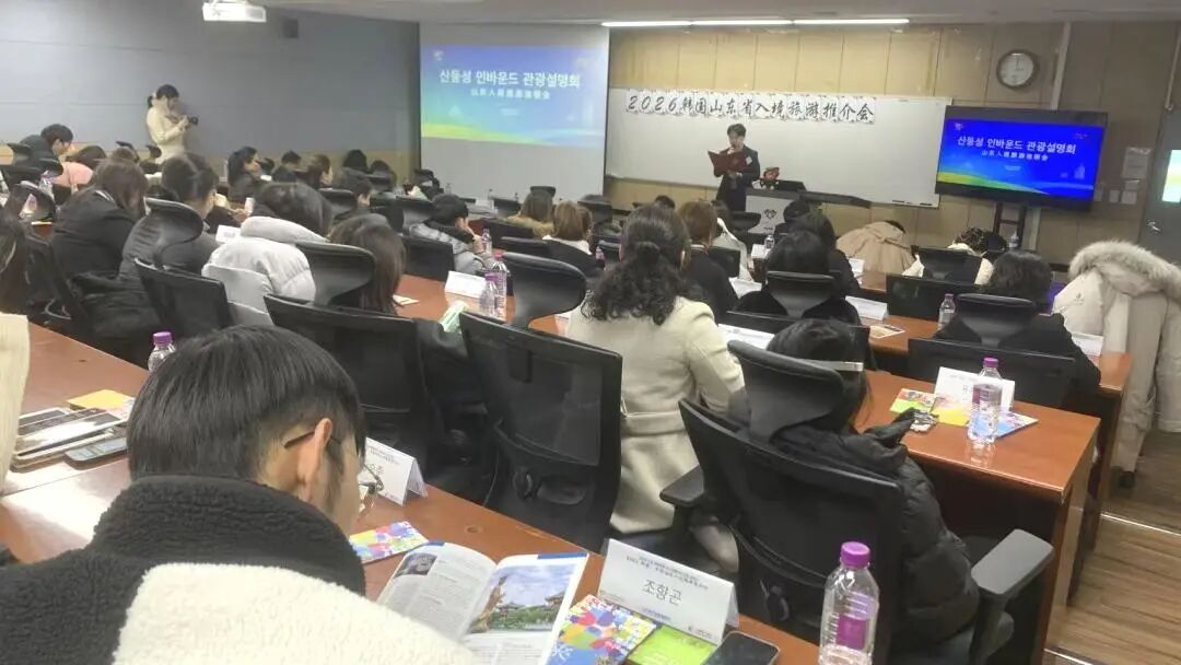1月27日,“2026韩国·中国山东入境旅游推介会”在韩国庆熙大学商学院举行。本次活动主要面向韩国高校师生集中推介山东文旅资源及“航空+文旅”线路产品,并同步举办山东特色非遗与文创展,展示包括东营的《孙子兵法》书籍、广饶齐笔,烟台的草编贴画、狼毫状元笔,以及潍坊的风筝和剪纸等丰富多样的文化创意产品,吸引庆熙大学及周边大学60余名师生到场参与。
