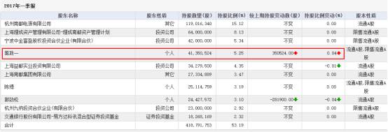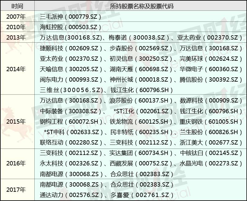 截止2017年1季报计算,蒋政一持有南都电源(300068.SZ)、合众思壮(002383.SZ)、通达动力(002576.SZ)和多喜爱(002761.SZ)4只股票目前市值约在8.41亿元左右,而其在2007年初次现身的时候,身价仅仅245万元左右。