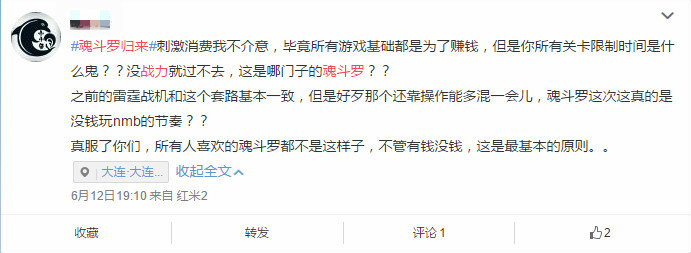 目前为止,《魂斗罗:归来》每个区火力值排行靠前的玩家全都投入了大量金钱,排名顶尖玩家的充值金额更是超过了1万元。至少现在,这款情怀大作只能成为这些至尊VIP的回忆盛宴。