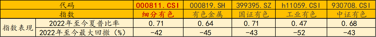 3、收益率表现更优:2022年至今,有色ETF汇添富(159652)标的指数夏普比率同类领先,且最大回撤同类更低,投资体验更好。