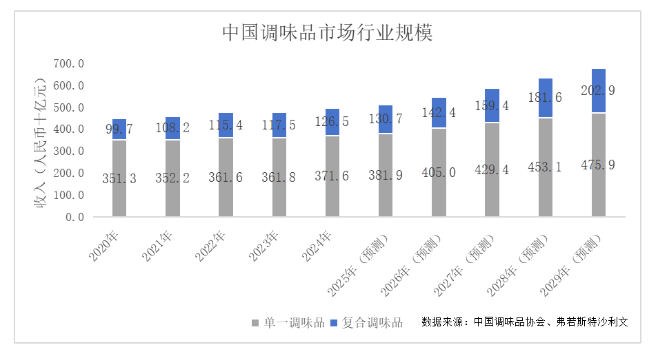 按产品品类划分,酱油等单一调味品目前仍占据中国调味品市场的主要份额。但从市场增长速度来看,复合调味品已成为调味品行业的重要增长动力。据中国调味品协会、弗若斯特沙利文数据,2024年,按收入计,中国复合调味品市场规模达到人民币1,265亿元,增速大幅超过单一调味品,预计到2029年将达到2,029亿元,市场份额将增至29.9%。