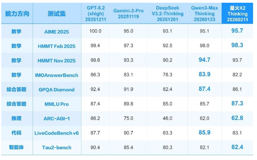 在这样的背景下,基于全国产算力训练的深度推理大模型讯飞星火 X2 上线,就不只是一次常规迭代,而更像是讯飞把自身战略定位写进模型底座的一次确认。从 X1.5 到 X2,讯飞把升级重点放在两件事上:一是整体能力上台阶,尤其在数学、答题、语言理解与智能体能力上,追求对标全球最高水平;二是把推理能力进一步压进行业场景,让行业大模型继续领先,并在产品与方案层面出现肉眼可见的进步。