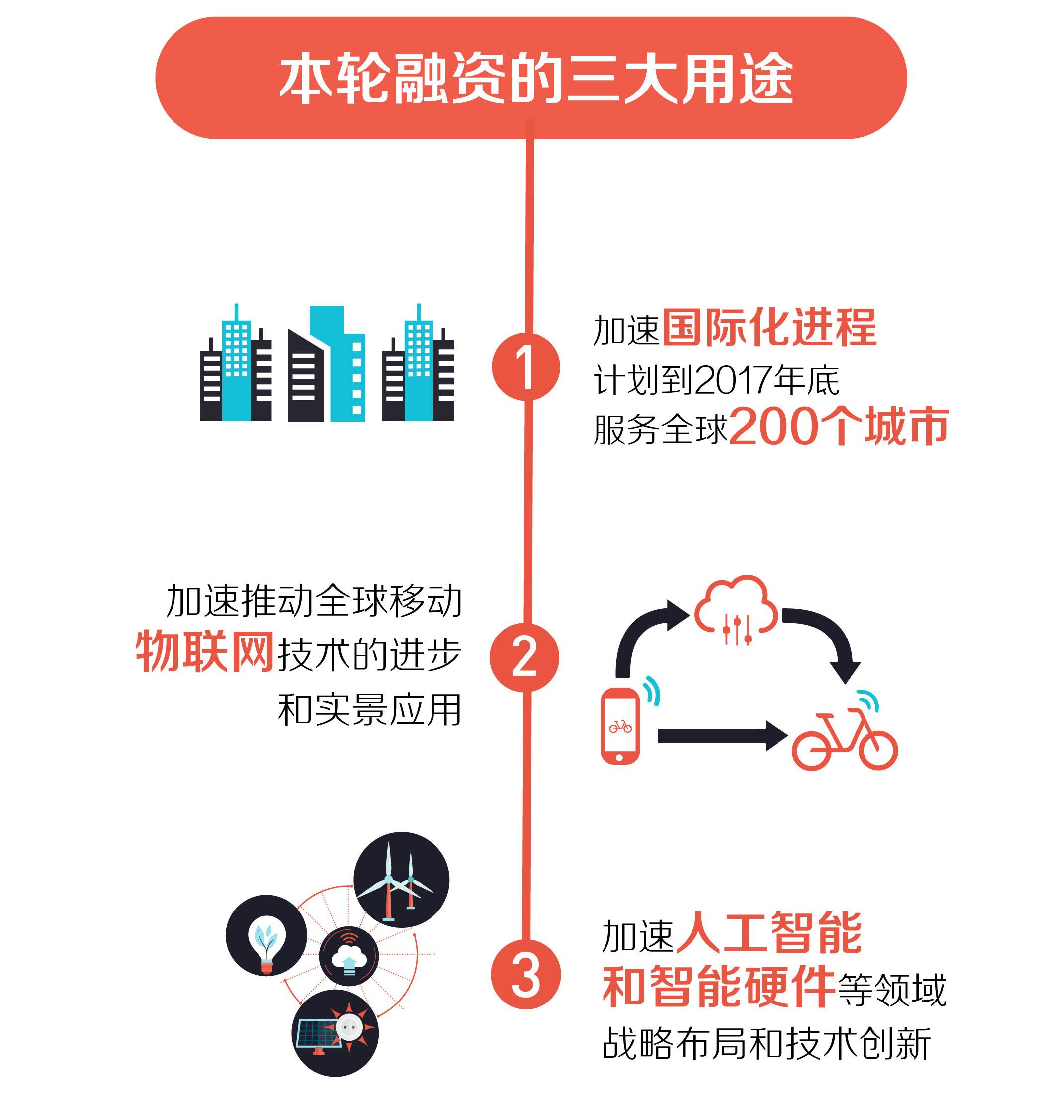 摩拜表示,新一轮融资将被用在以下3个方面。