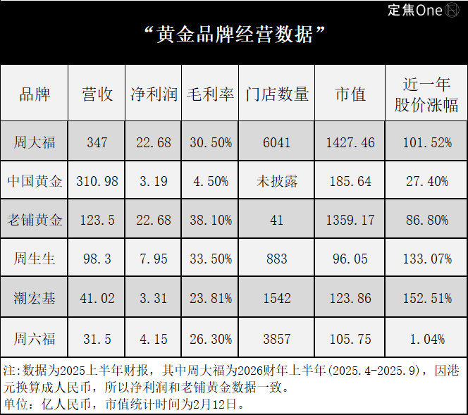 而老铺黄金只有41家门店,市值却已逼近坐拥超6000家门店的周大福,说明在当前市场中,规模并非决定估值的唯一因素,品牌定位、盈利模式与增长质量更受投资者关注。