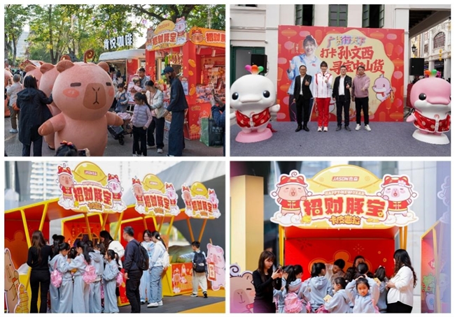 从广州花市、越秀灯会的民俗场景体验,辐射到全国多城联动的快闪布局,卡皮巴拉豚咔咔IP紧扣“招财”“松弛”等精准切中当代年轻人情绪的关键词,打造兼具文化内涵与社交货币属性的IP衍生品;另一方面,通过与传统节庆、城市文旅及大型盛典场景的渗透,构建了沉浸式、高互动的体验生态。杰森娱乐通过富有创意的IP产品与创新消费体验打造可玩、可分享、可收藏的新春仪式感,成功将IP融入多元场景。这不仅是IP商业价值的成功拓展,更是一次传统年俗与当代消费潮流同频共振的生动诠释。