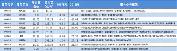界面新闻整理了“王者荣耀”板块的相关个股情况: