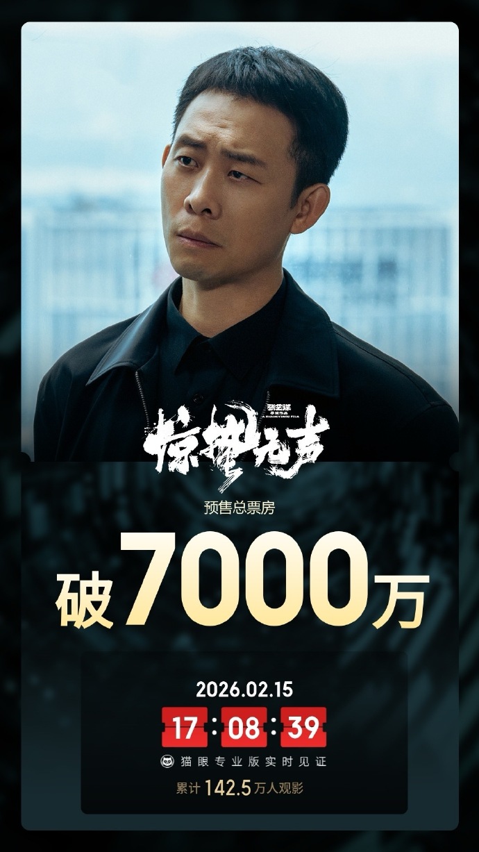 2月15日,据猫眼专业版数据,电影《惊蛰无声》映前2天,预售总票房破7000万元。