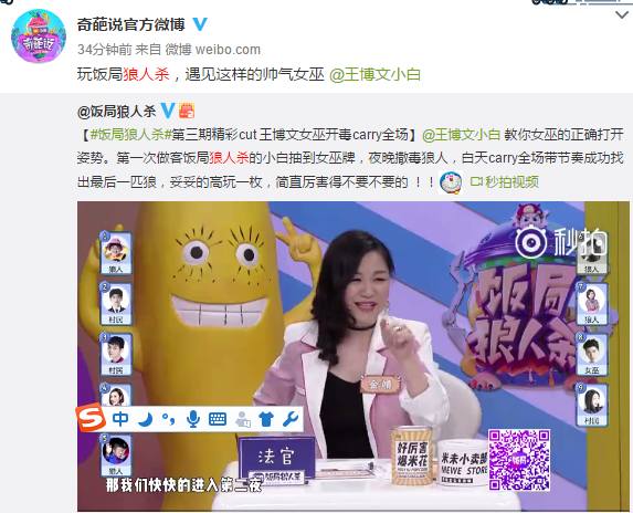 1.自有节目《奇葩说》、《饭局狼人杀》宣传