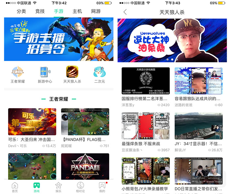 欢乐狼人杀APP作为YY语音平台下的应用,拥有巨大的流量优势。YY语音在直播频道中加入了欢乐狼人杀直播视频,为欢乐狼人杀APP做了宣传。
