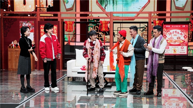 扎实的语言类节目则是这桌席面最入味的“压桌菜”。冯巩那句“想死你们了”依旧是熟悉的配方、熟悉的味道;孟鹤堂、周九良的默契逗捧,常远的机智反转,以及蒋龙、高海宝等“喜人”新势力的爆梗不断,筑牢了晚会的快乐底座。而全场最让人惊喜的“隐藏菜单”,当属周深的跨界小品首秀。这一次,他不是简单的客串“佐料”,而是真正成为了小品的“主料”。在舞台上,他与喜剧大咖一来一回,表演毫不生涩,不仅包袱抖得响,更自如地完成了一个喜剧角色的塑造,展现了惊人的艺术可塑性。