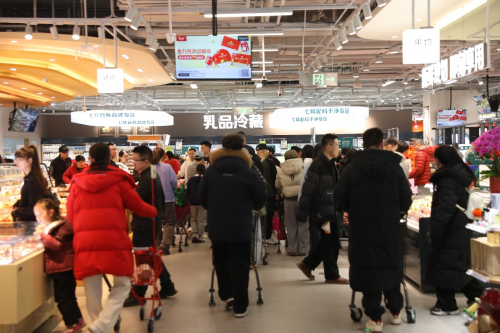 春节作为阖家团圆的传统佳节,既是万家灯火的温馨时刻,也是观察消费市场的一扇窗口。2026年丙午新春,走进京东七鲜的线下门店,热闹喜庆的节日氛围扑面而来。宽敞的卖场通道被满载的购物车与络绎不绝的人流填满。各个品类专区前消费者驻足选购,补货车如同“移动货架”在人群中穿梭。