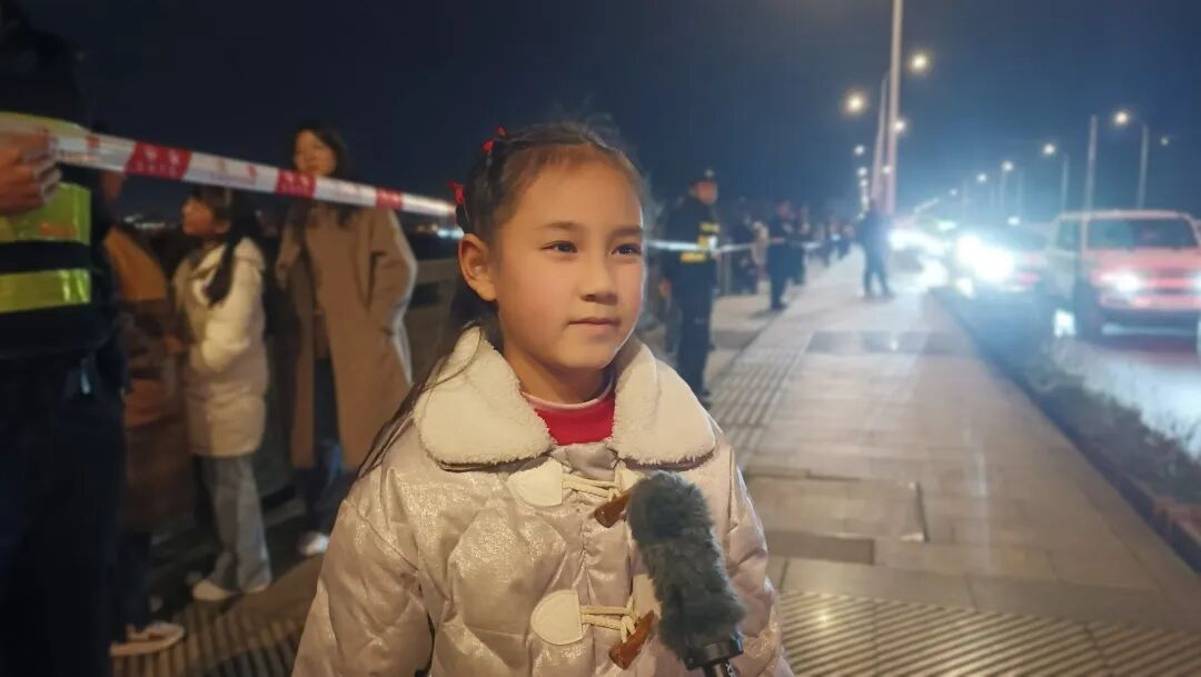 团结小学学生韩音希,仰着小脸望着漫天光影直呼震撼,稚嫩的话语里满是骄傲:“看到这些无人机表演,不仅看到了科技的强大,也感受到祖国的强大,为祖国祝福!为城市点赞!”