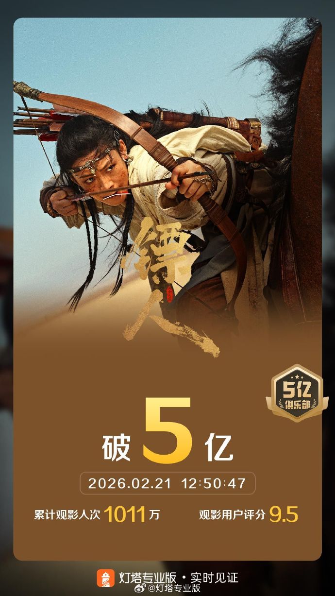 据灯塔专业版实时数据,截至2月21日12时50分,影片《镖人:风起大漠》票房突破5亿。