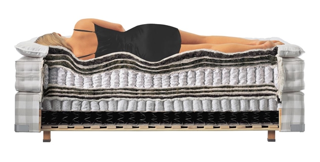 与市面常见的合成填充、乳胶床具等工业化量产床具不同,海丝腾始终坚守纯手工匠造与全天然材质,床具采用瑞典北部生长缓慢、质地密实的优质松木作为稳固框架,甄选羊毛、棉、亚麻以及被誉为“黑色黄金”的天然马尾毛作为核心填充,再搭配独立袋装弹簧系统,既能根据用户的体型与睡姿实现对脊柱的精准承托,分散运动后肌肉的压迫感,又能通过天然纤维的透气循环打造恒温睡眠环境,帮助身体快速入眠,同时吸收翻身噪音,创造深度睡眠空间,让每一次训练后的深度安睡成为体能与状态的满血复活。