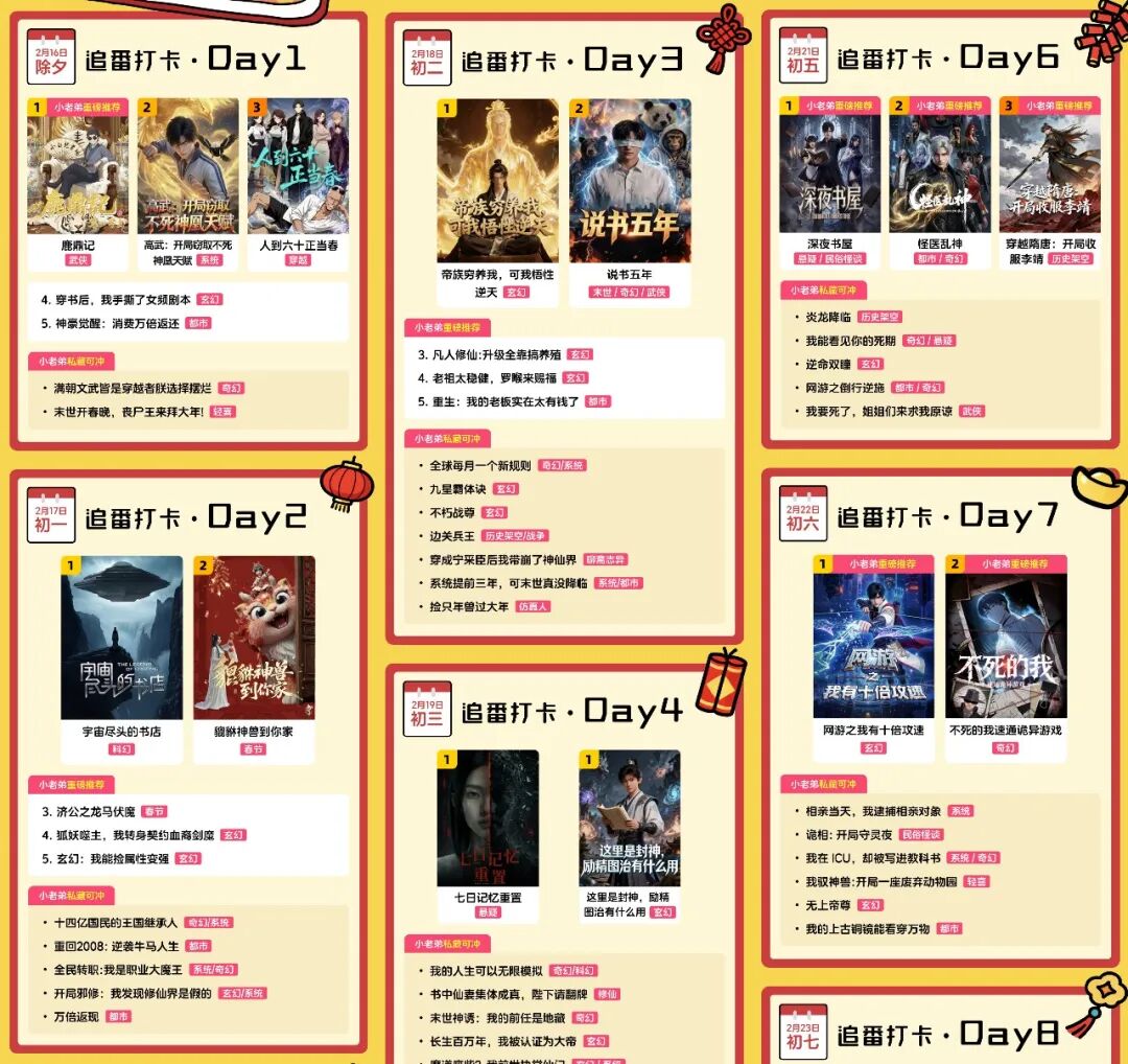 火龙漫剧春节追剧日历