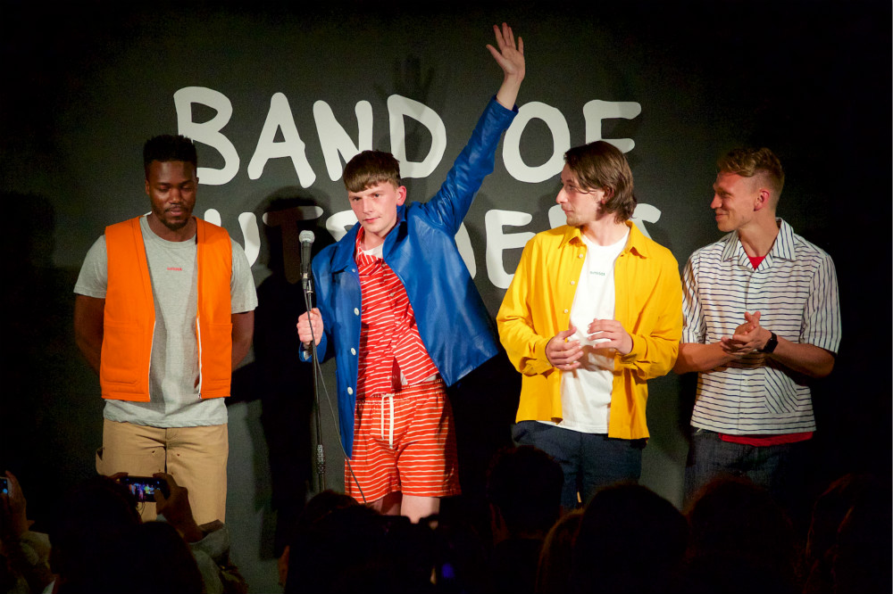 抬头仔细打量起演员小伙的服装,我提醒自己,这个英国版王自健的节目其实是场时装发布会,来自创立于美国的品牌Band of Outsiders。2015年,成立11年的Band of Outsiders面临破产清算,又在找到了新东家CLCC SA后重生,如今换了一个驻扎在伦敦的全新创意团队。
