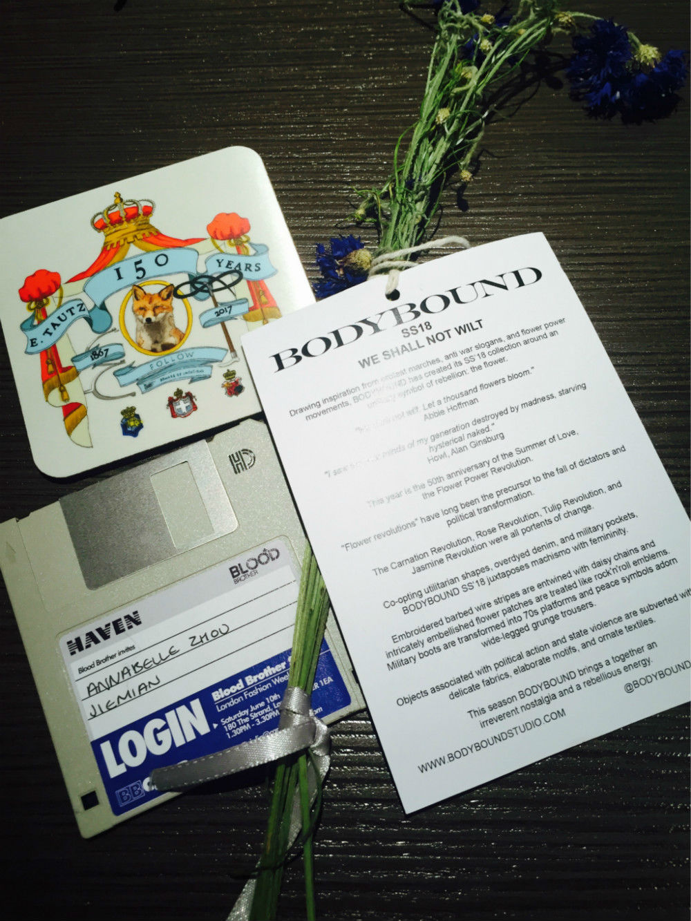 事实上展示和秀的区隔,正在慢慢模糊了。从Bodybound到Blood Brother的展览,品牌们都精心制作了邀请函,还在入门处赠花,模特们会在展览空间中走秀,然后才停下来供人围观。在用心程度上,它们比单一走秀的品牌做得更好。