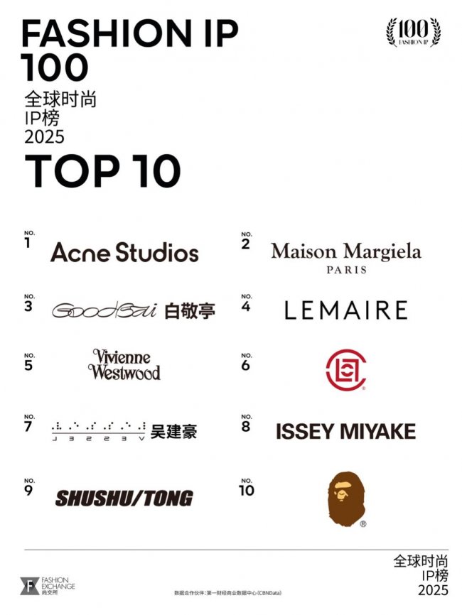 从榜单的深度解读可以看出,2025年的中国消费市场已基本完成“符号祛魅”,消费者进一步摒弃了“Logo崇拜“,转向追求产品本质、审美与文化价值认同;中国的时尚消费市场正从“流量导向”转向“审美与文化价值认同导向”的结构性改变。这种转变不仅让 Acne Studios 这种具有稳定商业模式和清晰文化美学的品牌逆袭夺冠,也让中国本土时尚 IP的整体表现持续向好。Acne Studios登顶、白敬亭(GoodBai)、CLOT“杀”回总榜前十、“Labubu之父”龙家升首次上榜等数据背后,并非单一时尚IP的胜出,而是这一趋势的集中体现。2025年的榜单,不只是一次排名变化,更揭示了一个极为重要的共识:中国时尚消费,正在从“流量主场”,转向“文化与审美驱动”。